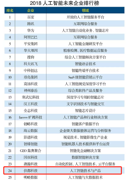 星空电竞科技在100家人工智能未来企业中名列第24位